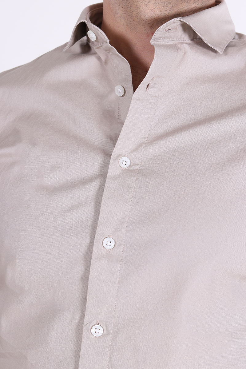 - Beżowa koszula z długim rękawem w kroju slim fit