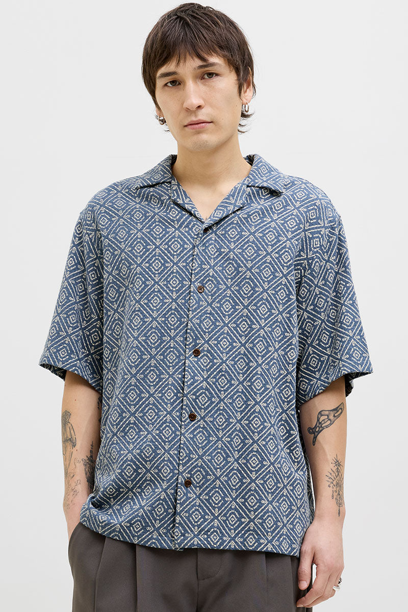- Koszula z krótkim rękawem z małymi geometrycznymi wzorami.