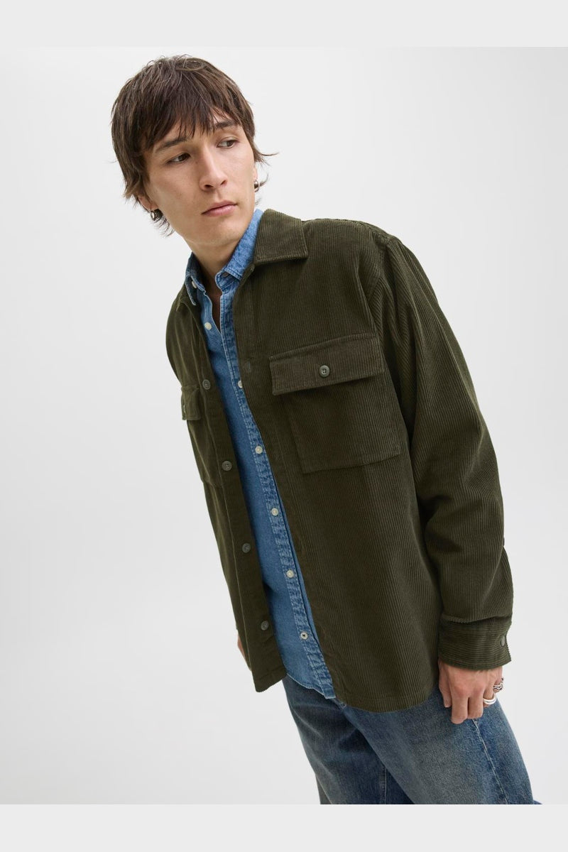 - Overshirt posiada klasyczny kołnierz, dwie kieszenie z przodu, zapięcie na guziki oraz guziki przy rękawach