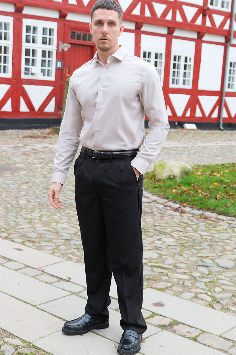 - Beżowa koszula z długim rękawem w fasonie slim fit