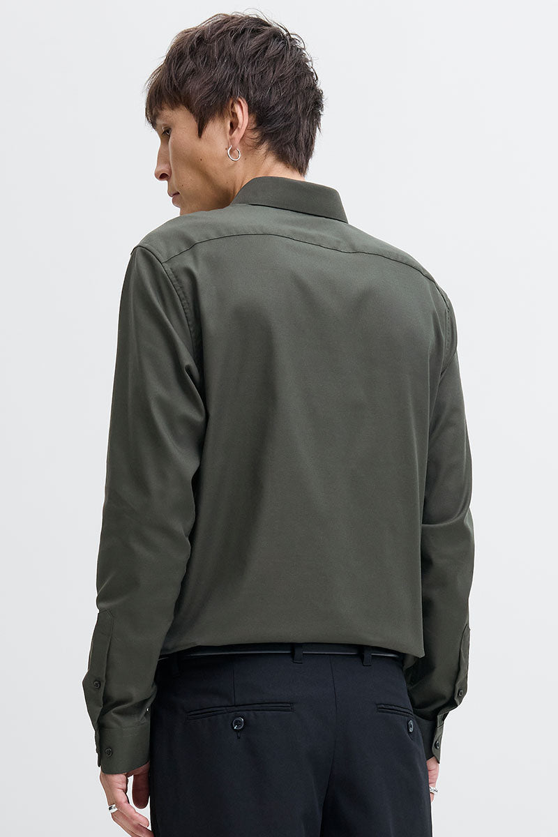 - Ciemnozielona koszula z długim rękawem w fasonie slim fit