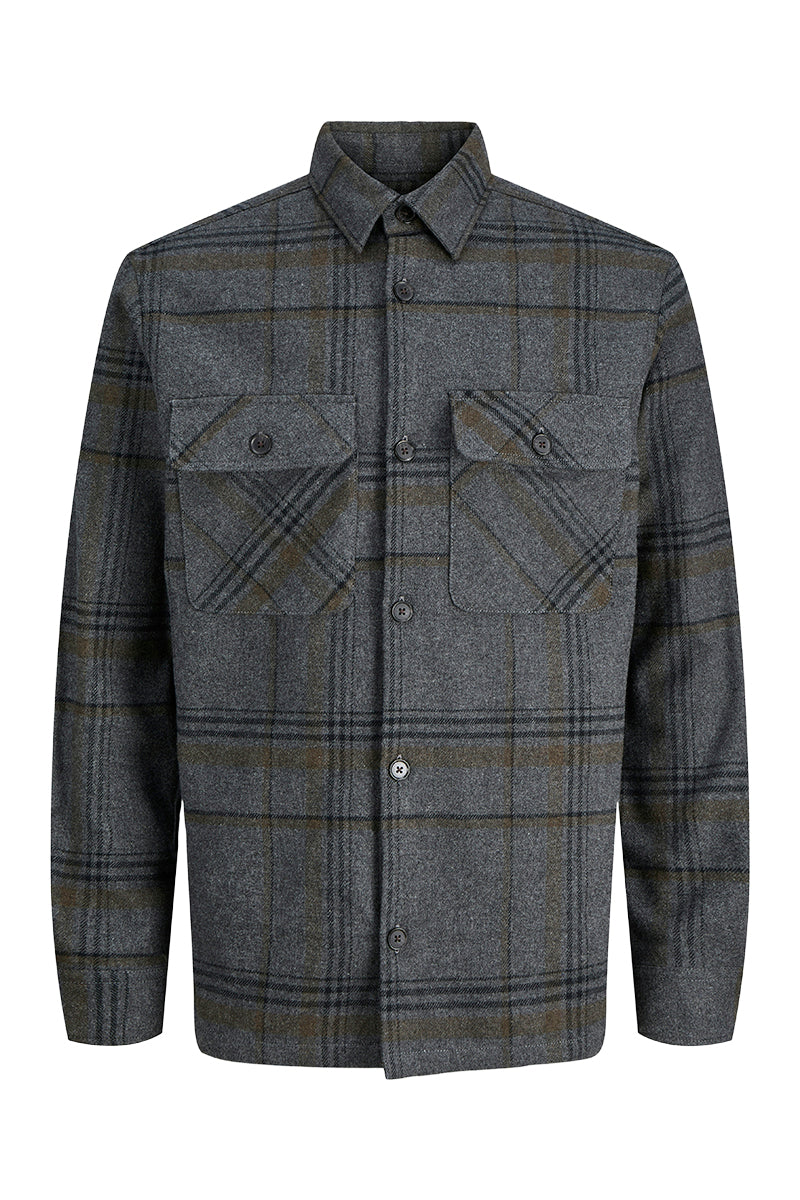 - Ciemnoszara kraciasta koszula overshirt z długim rękawem