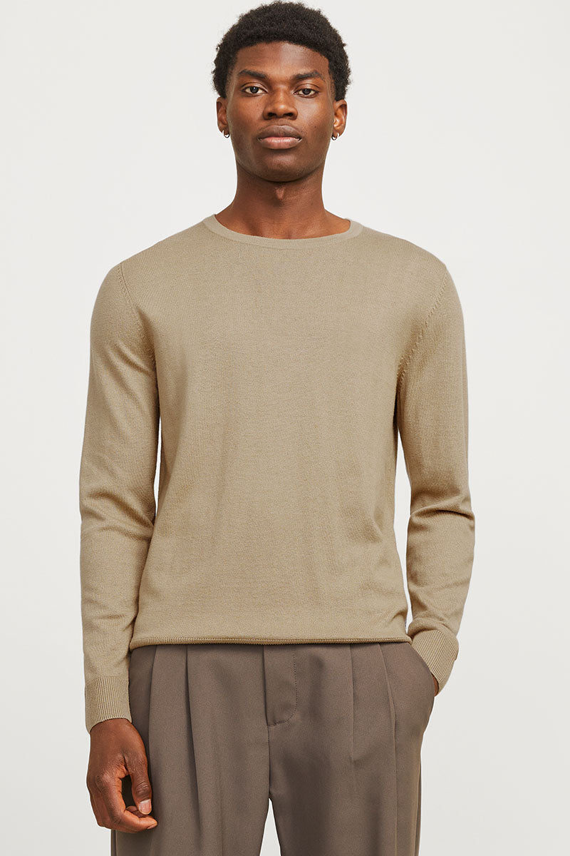 - Beżowy sweter z długim rękawem w fasonie knit fit.