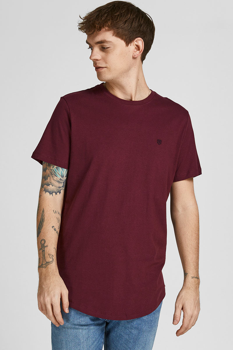 - Z okrągłym dekoltem i małym haftem