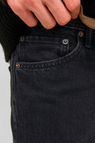 Alex jeans come with discreet Jack & Jones embroidery on the back pockets and a classic button closure. The embroidery adds a subtle detail of style to the jeans, while the button closure ensures a secure and timeless fastening. -