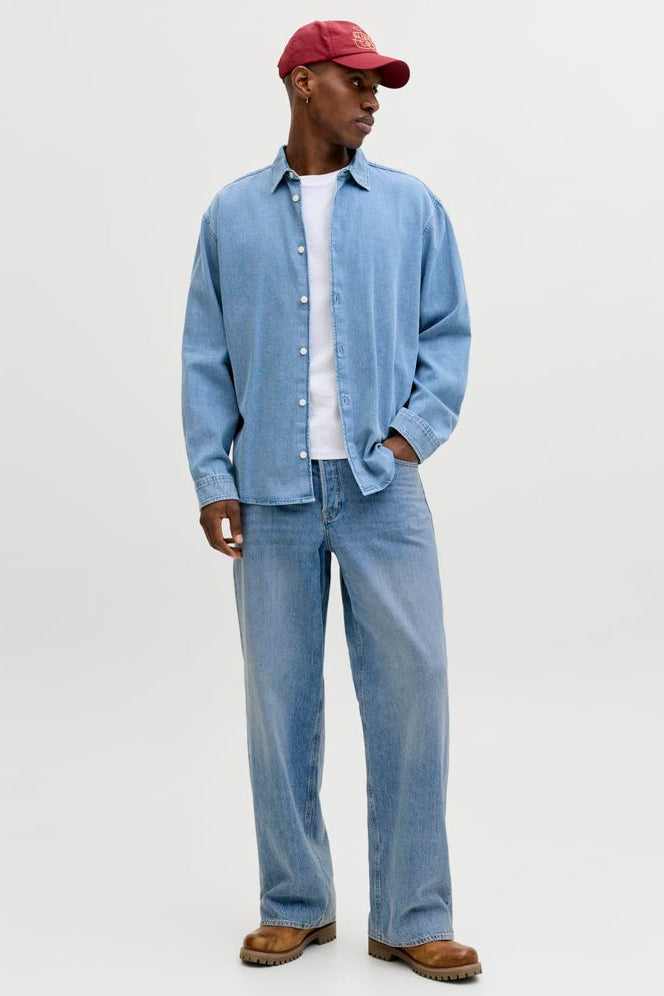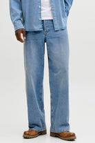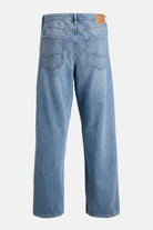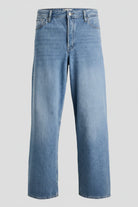 Spodnie jeansowe o szerokim kroju, które łączą klasyczny, ponadczasowy design z wygodą noszenia. Model ten posiada zapięcie na zamek błyskawiczny oraz charakterystyczne detale takie jak pięć kieszeni, w tym kieszonkę na monety. Wysokość stanu określana jako średnia zapewnia komfort i modny wygląd. Jeansy poddane zostały procesowi stonewash, co nadaje im lekko wyblakły, lekko zużyty efekt. Szerokie nogawki oraz luźny krój w udach i kolanach gwarantują swobodę ruchów.