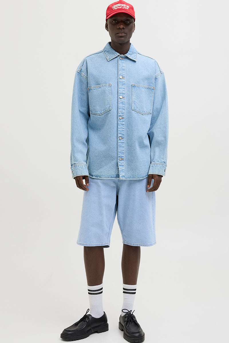 - Jasnoniebieskie szorty jeansowe w ekstra luźnym kroju