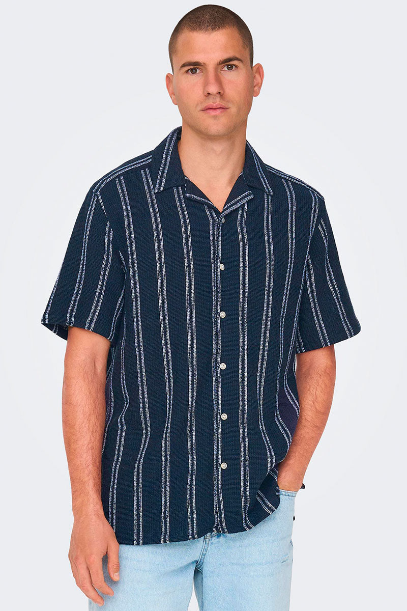 Trev Reg Structure Stripe SS Shirt Dark Navy