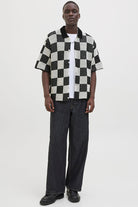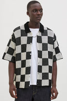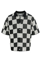 - Kratkowany sweter z krótkim rękawem w luźnym kroju.