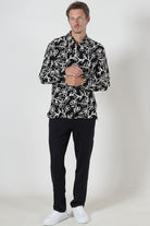 • Długo rękawowa koszula z kwiatowym wzorem w regularnym kroju