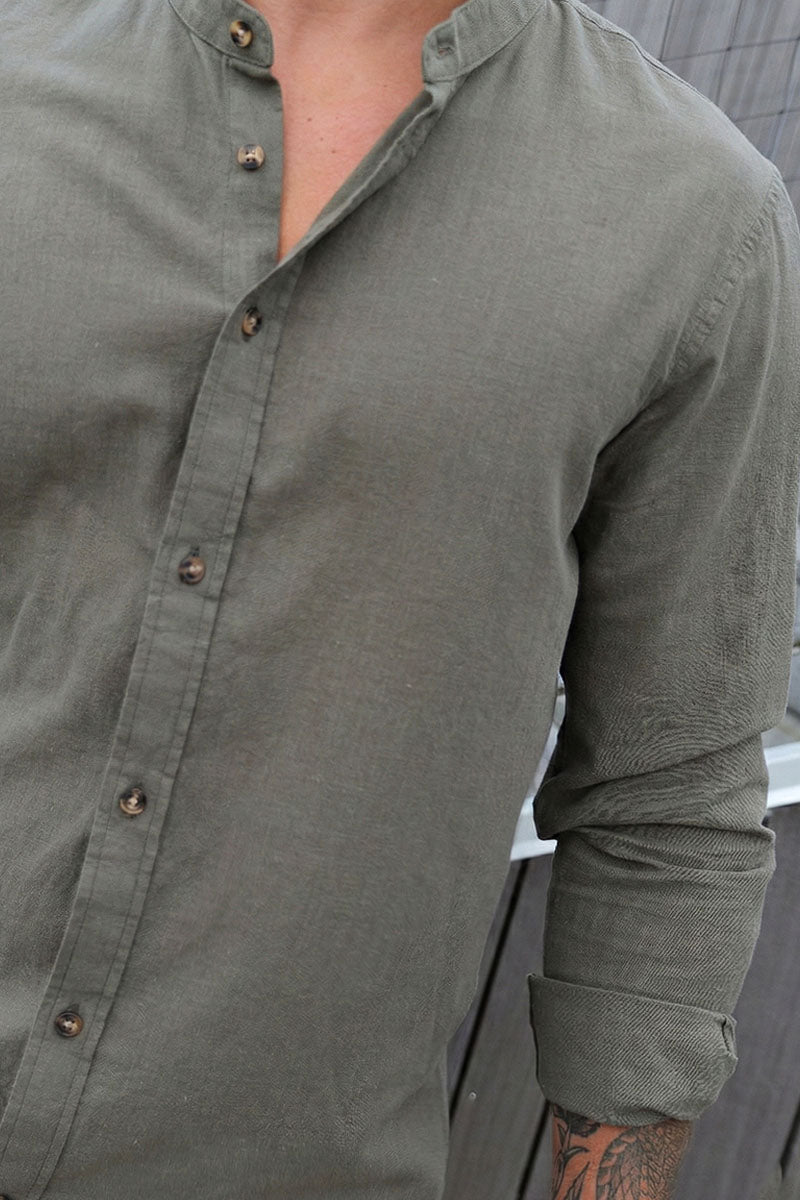 Summer Shirt Linen Blend Band LS Dusty Olive
