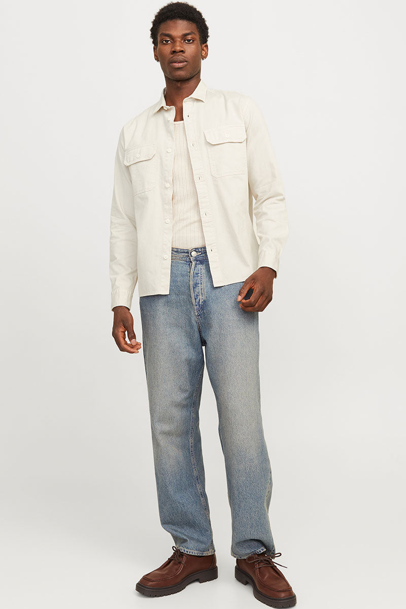 4. Pozostawić rozpiętą koszulę z t-shirtem pod spodem