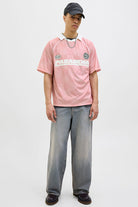 Retreat AOP Mesh Open Collar Polo SS Pink Icing