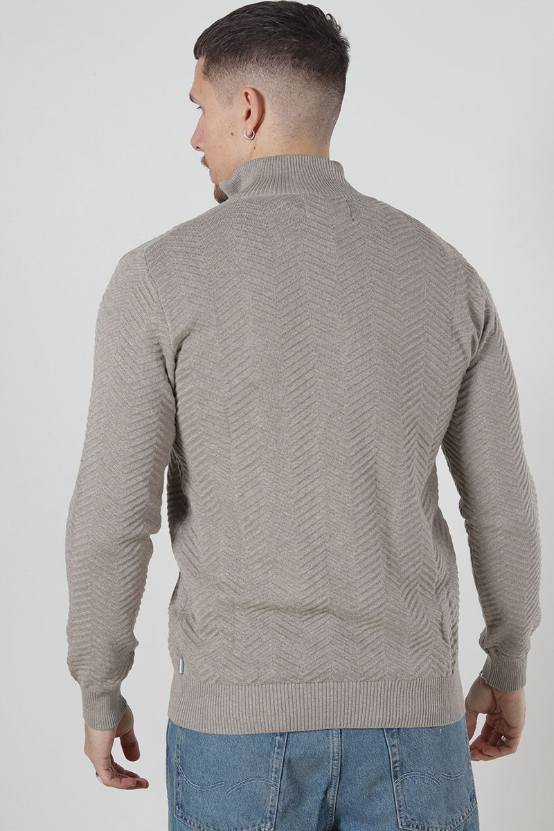 - Beżowy sweter dziany z długim rękawem o regularnym kroju