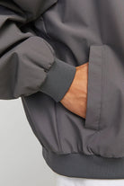 - Kurtka ma 2 przednie kieszenie, zapięcie na zamek i ściągacze przy rękawach i u dołu