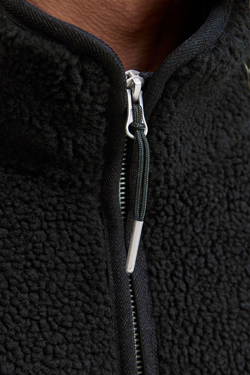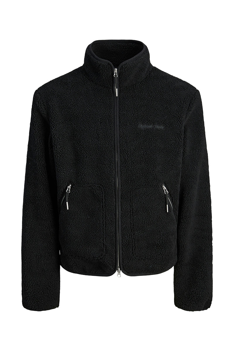 - Kurtka ma wysoki kołnierz oraz zamki błyskawiczne z przodu i przy kieszeniach