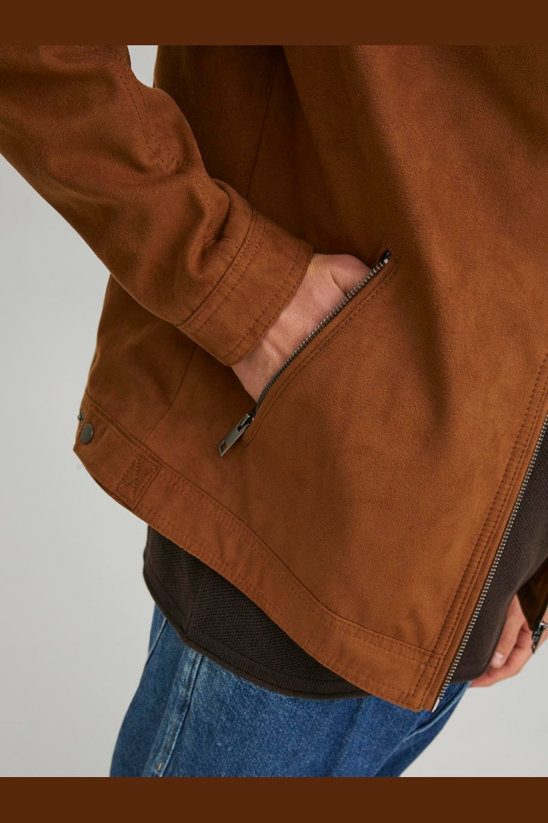 Ta kurtka o sportowym charakterze doskonale sprawdzi się na co dzień, łącząc wygodę z modnym designem. Dzięki zewnętrznemu materiałowi przypominającemu zamsz, wykonanemu z trwałego poliestru pokrytego poliuretanem, jest odporna na uszkodzenia i łatwa w pielęgnacji. Charakterystyczny kołnierz typu biker oraz długie rękawy podkreślają casualowy styl, a przeszycia dodają ciekawy, pikowany detal. Kurtka posiada praktyczne kieszenie boczne i na piersi zapinane na zamek błyskawiczny, co zwiększa jej funkcjonalność.