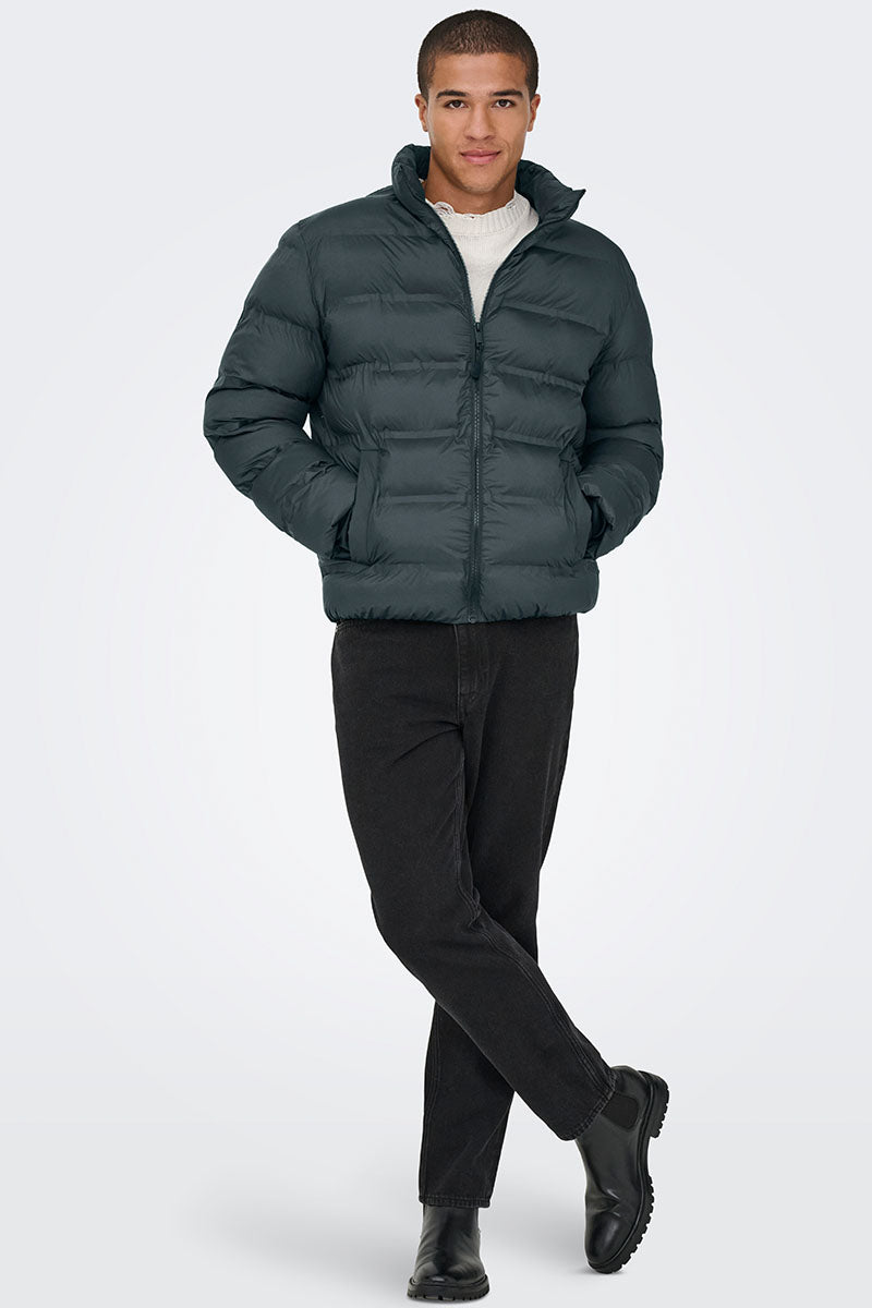 - Krótka kurtka puchowa z wysokim kołnierzem