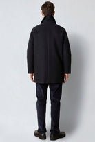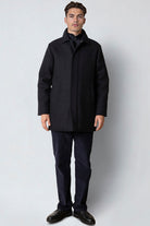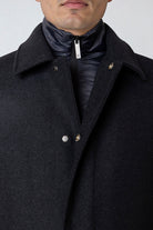 • Płaszcz ma zapięcie na guziki, dwie kieszenie i klasyczny kołnierz. Wewnętrzna kurtka zapinana na zamek, nie jest odpinana