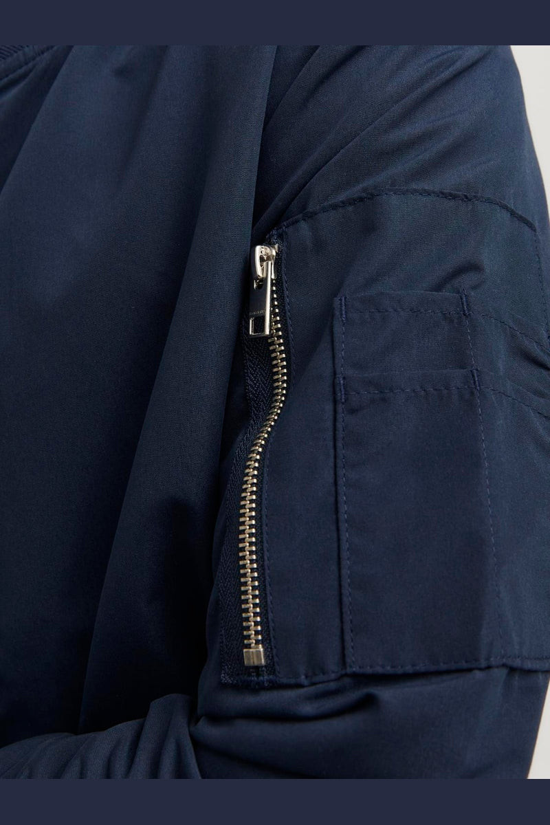Ta bomberka to lekka i komfortowa kurtka o krótkim kroju, idealna do codziennego, casualowego stylu. Wykonana z materiału zawierającego co najmniej 50% poliestru pochodzącego z recyklingu, który jest cienki, zapewniając oddychalność i wygodę noszenia. Posiada baseballowy kołnierz oraz długie rękawy, a zapinana jest na zamek błyskawiczny. Dodatkowo została wyposażona w praktyczne kieszenie z przodu na zamek oraz kieszeń na rękawie.