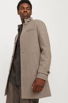 • Jednokolorowy płaszcz z wełny z dwiema skośnymi kieszeniami