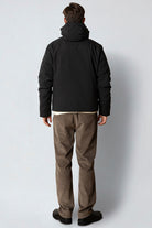 - Kurtka ma małe logo na piersi, kieszenie na zamek oraz regulowany pas
