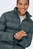 - Krótka kurtka puchowa z wysokim kołnierzem