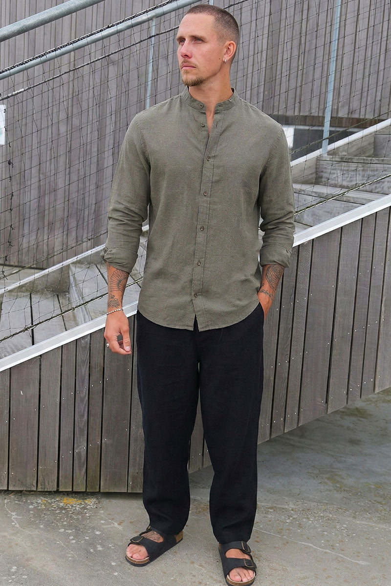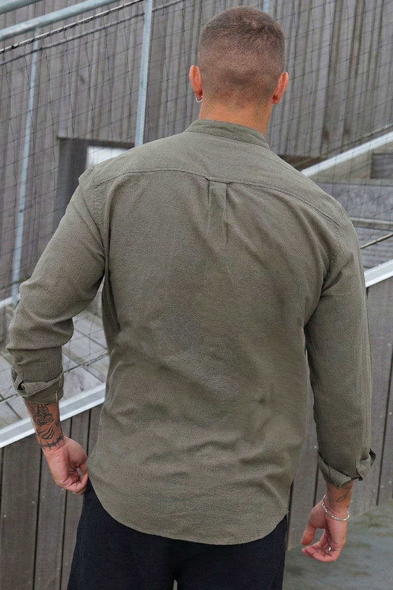Summer Shirt Linen Blend Band LS Dusty Olive