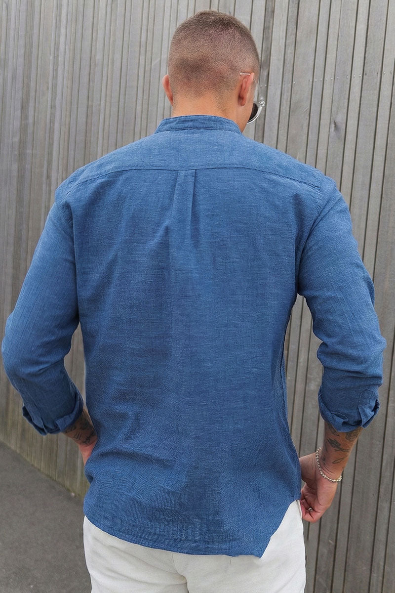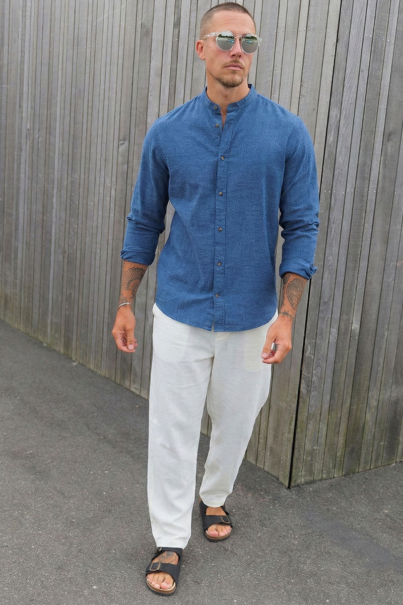 Summer Shirt Linen Blend Band LS Navy Blazer
