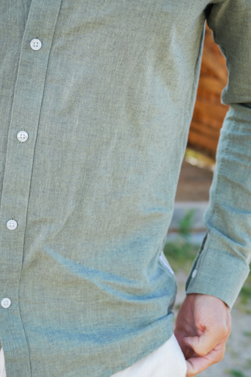 CAIDEN LS SOLID LINEN MAO SHIRT Swamp