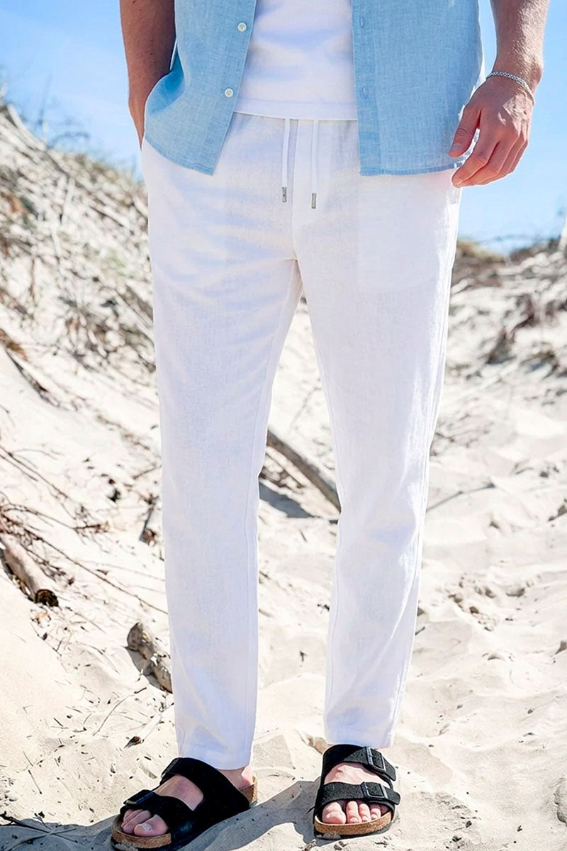 Spodnie wykonane z przewiewnej mieszanki lnu i wiskozy oferują komfort i lekkość, idealne na różne okazje. Model w białym kolorze doskonale wpisuje się w casualowy styl, a ich uniwersalny krój pasuje do wielu zestawów. Przeznaczone dla dorosłych mężczyzn, te spodnie to połączenie funkcjonalności i estetyki.