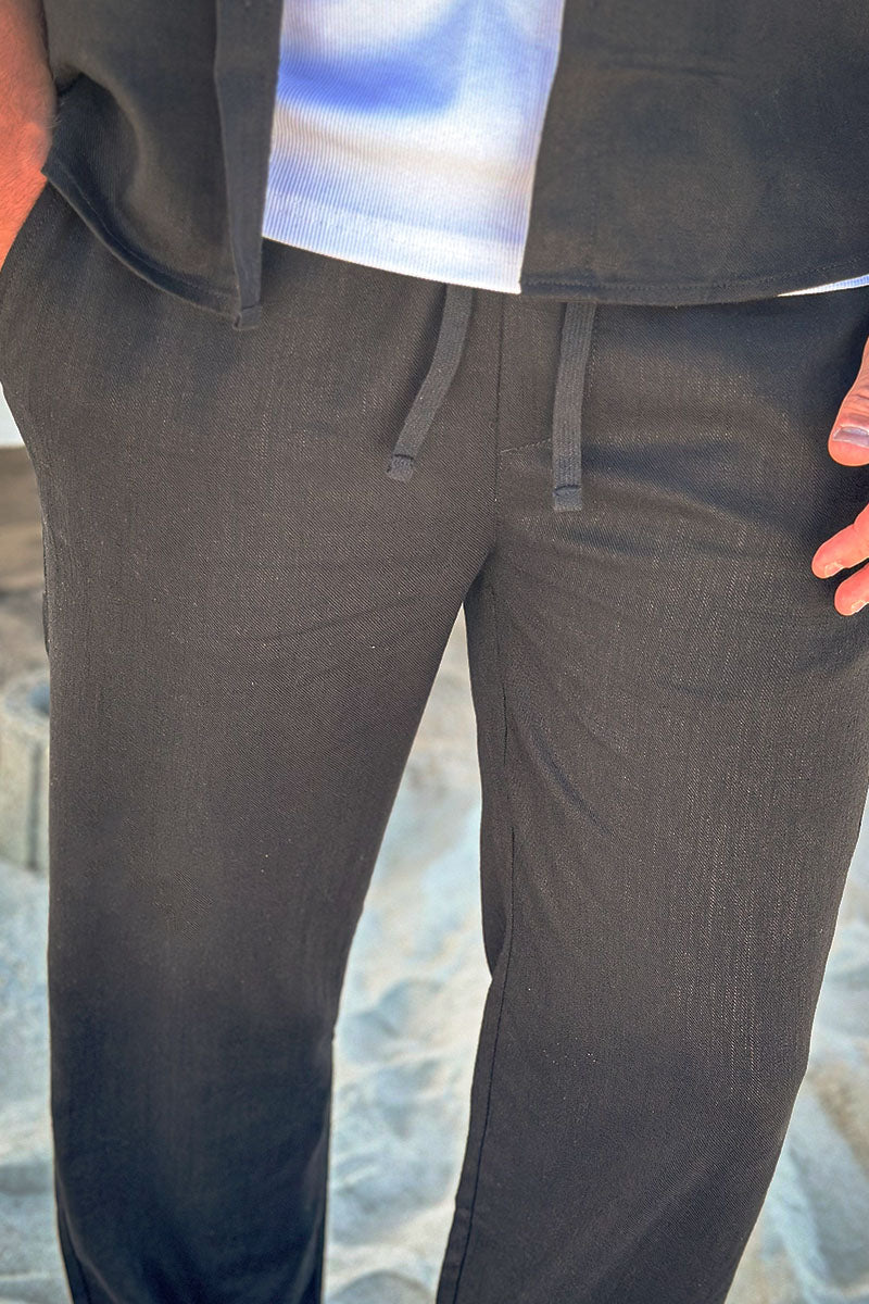 Sinus Loose Viscose Linen Pant Black