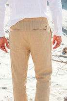 Spodnie wykonane w lekkim i przewiewnym lnie połączonym z wiskozą, co zapewnia komfort noszenia i delikatność materiału na skórze. Model w stonowanym, beżowym kolorze Curds & Whey doskonale wpisuje się w casualowy styl, idealny na cieplejsze dni. Spodnie zaprojektowane z myślą o dorosłych mężczyznach, stanowią uniwersalny element garderoby na różne okazje.