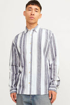 JJESUMMER LINEN BLEND SHIRT LS SN Navy Big Stripe
