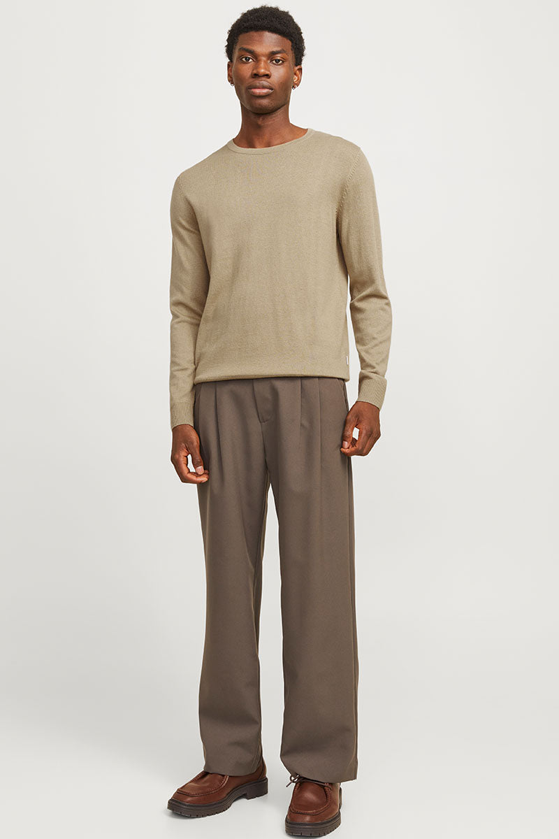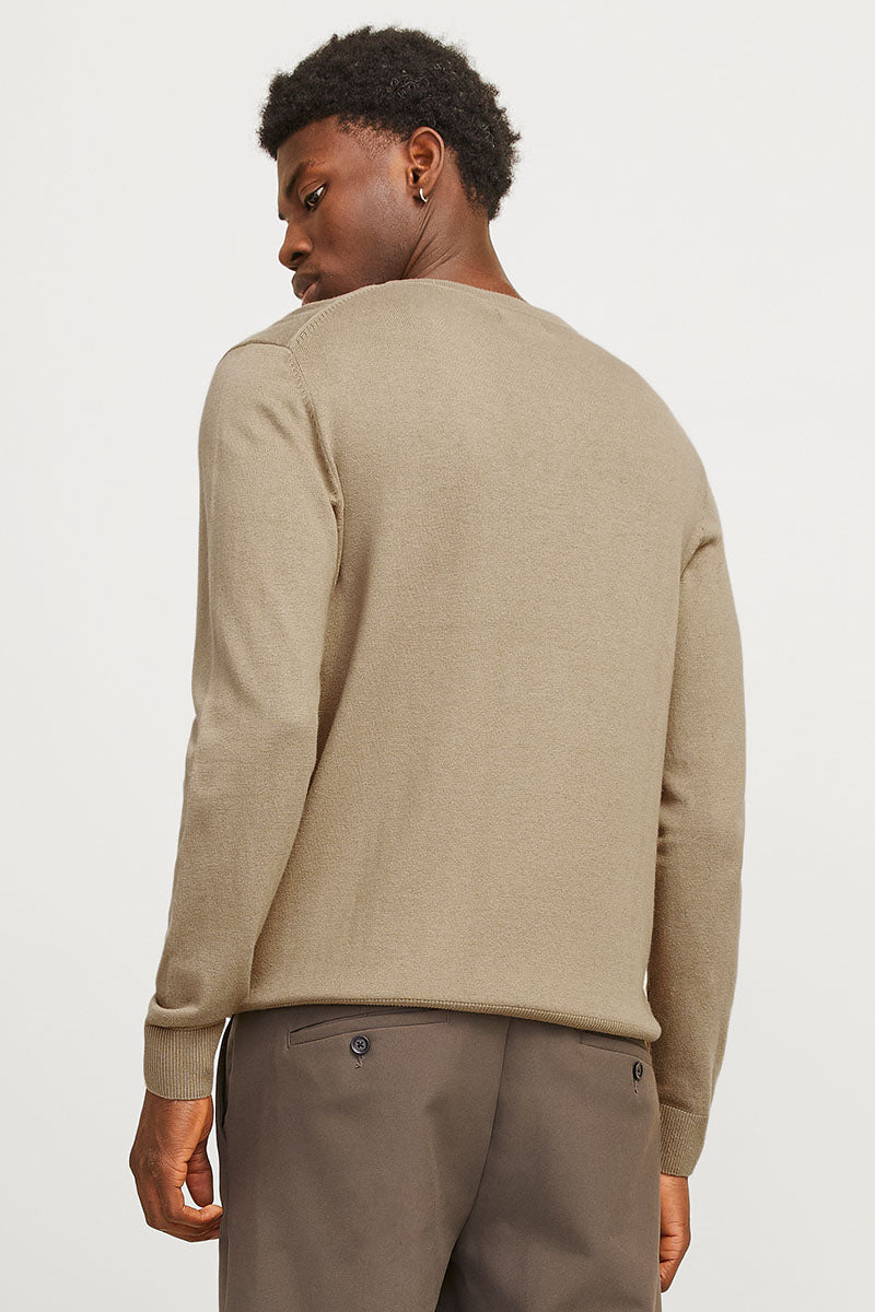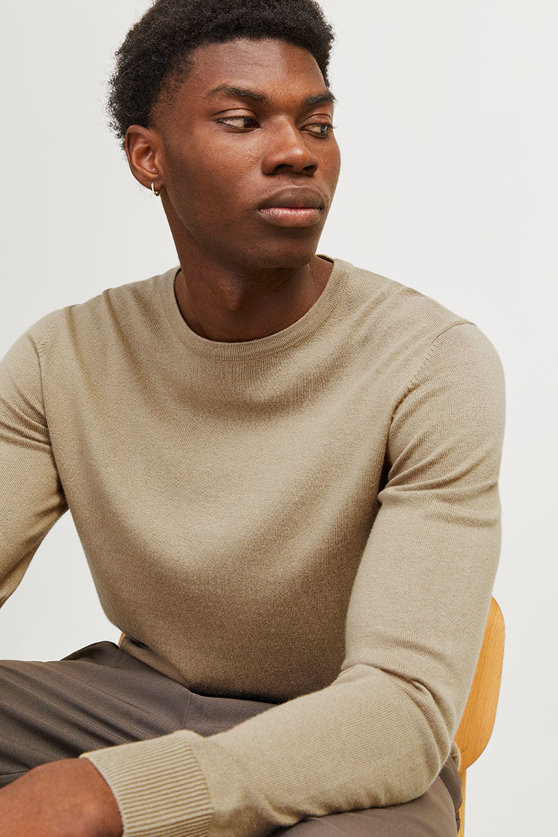 - Beżowy sweter z długim rękawem w fasonie knit fit.