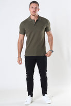 Koszulka polo Muscle fit w kolorze New Army została zaprojektowana z 4-kierunkowym rozciąganiem, zapewniając fantastyczne dopasowanie i elastyczność, które są idealne do intensywnych aktywności. Rozciągliwy w 4 kierunkach materiał rozciągając sie w każdym kierunku sprawia, że koszulka dobrze przylega do ciała. -