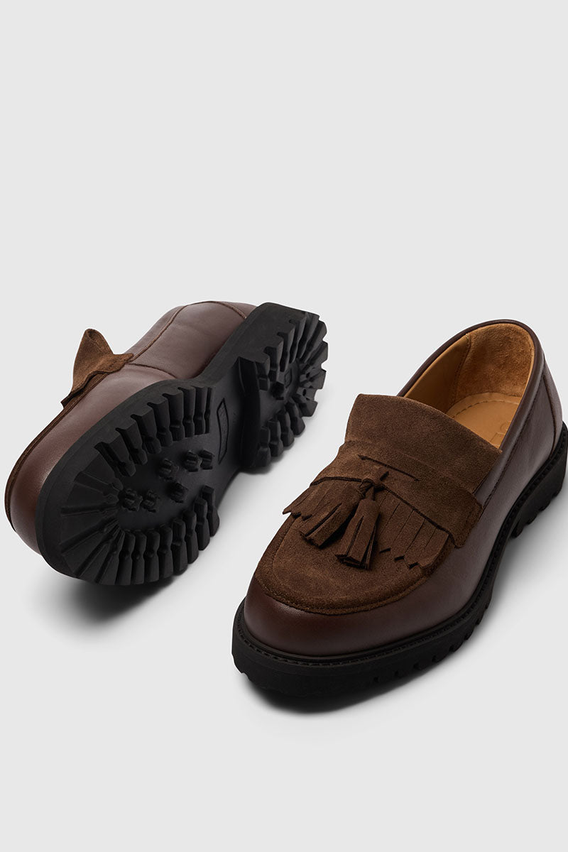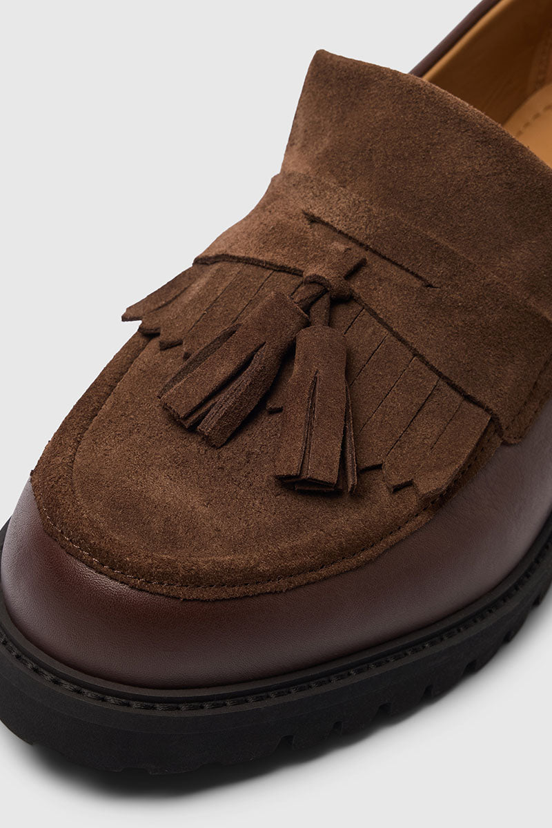 • Mokasyny z zamszu z zaokrąglonym noskiem