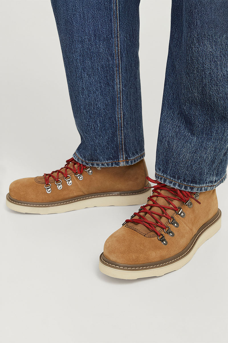 - Buty z wysoką cholewką z zamszu i zaokrąglonym noskiem