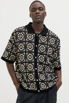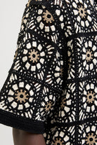 - Krótkorękawowy sweter polo o dzianinowej strukturze z wzorem