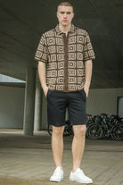 - Dzianinowa koszulka polo z krótkim rękawem i wzorem