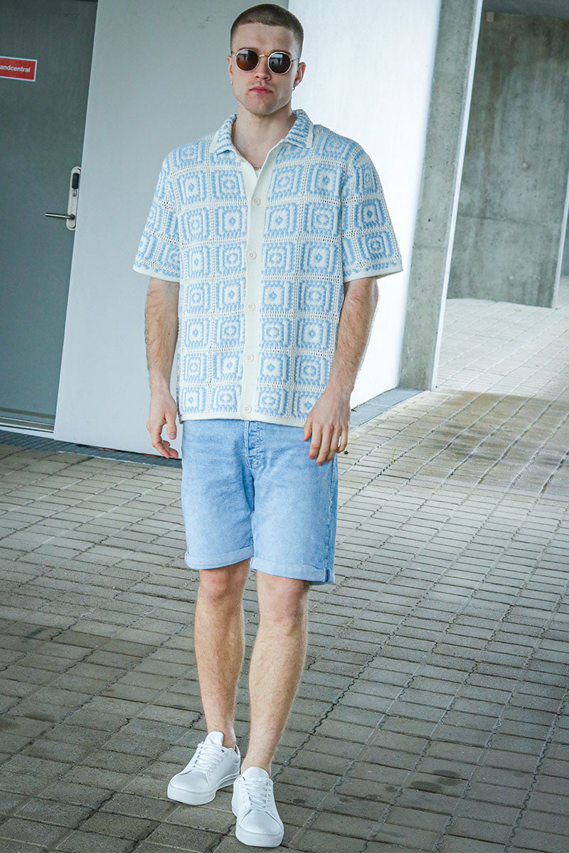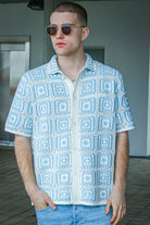 - Dzianinowa koszulka polo z krótkim rękawem i wzorem