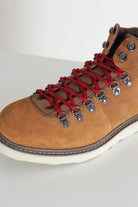 - Buty z wysoką cholewką z zamszu i zaokrąglonym noskiem