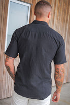 - Koszula ma klasyczny design z tradycyjnym kołnierzykiem i krótkimi rękawami