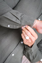 - Koszula ma klasyczny design z tradycyjnym kołnierzykiem i długimi rękawami, które można podwinąć, jeśli jest taka potrzeba