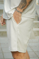 - Jednokolorowe szorty z ukośnymi kieszeniami