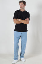- Czarny t-shirt z krótkim rękawem w regularnym kroju