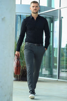Ciemnoszary melanż Spodni Komfort zapewnia piękny i wyszukany wygląd. Kolor jest uniwersalny i można go łatwo łączyć z innymi kolorami i różnymi rodzajami odzieży. .