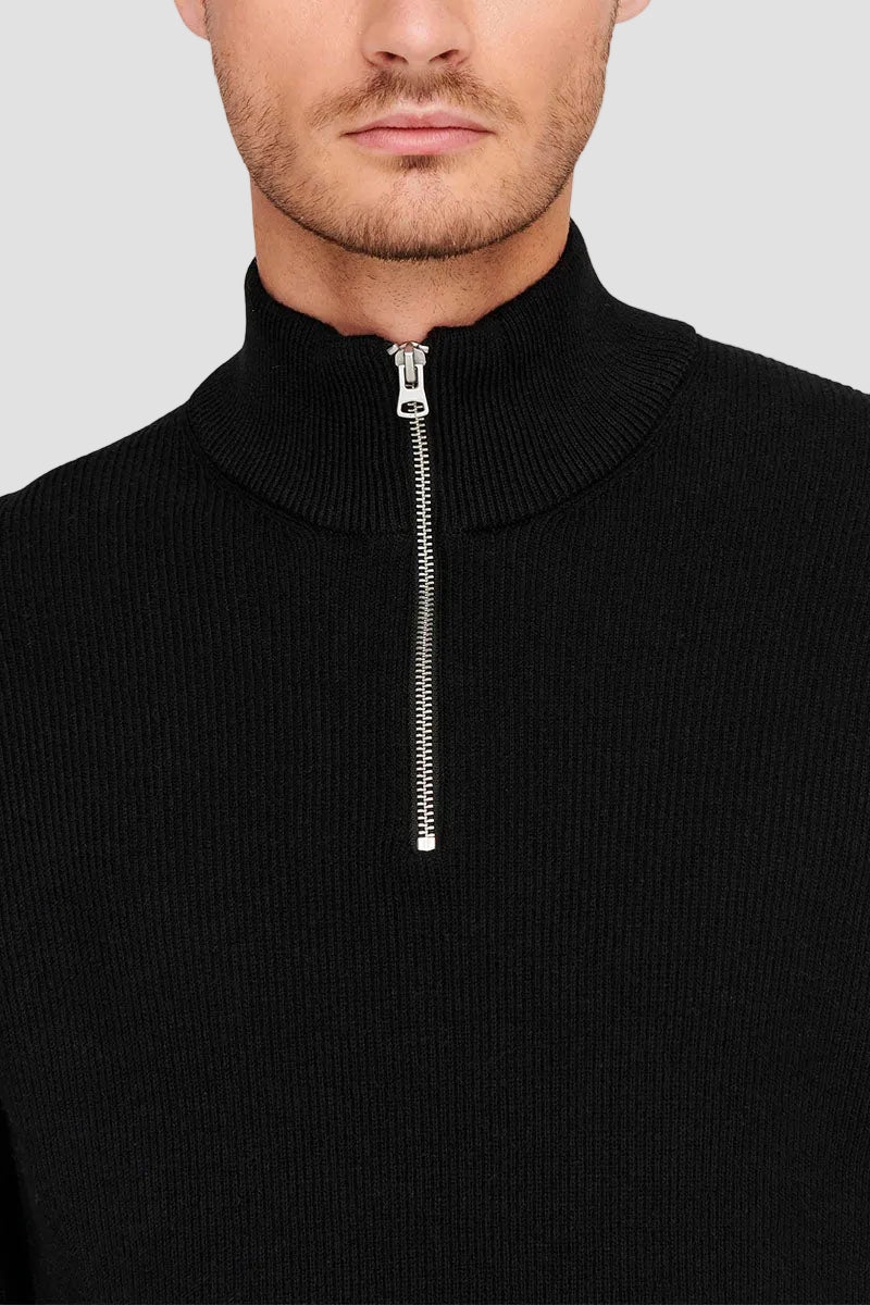 PHIL COTTON HALF ZIP KNIT Black