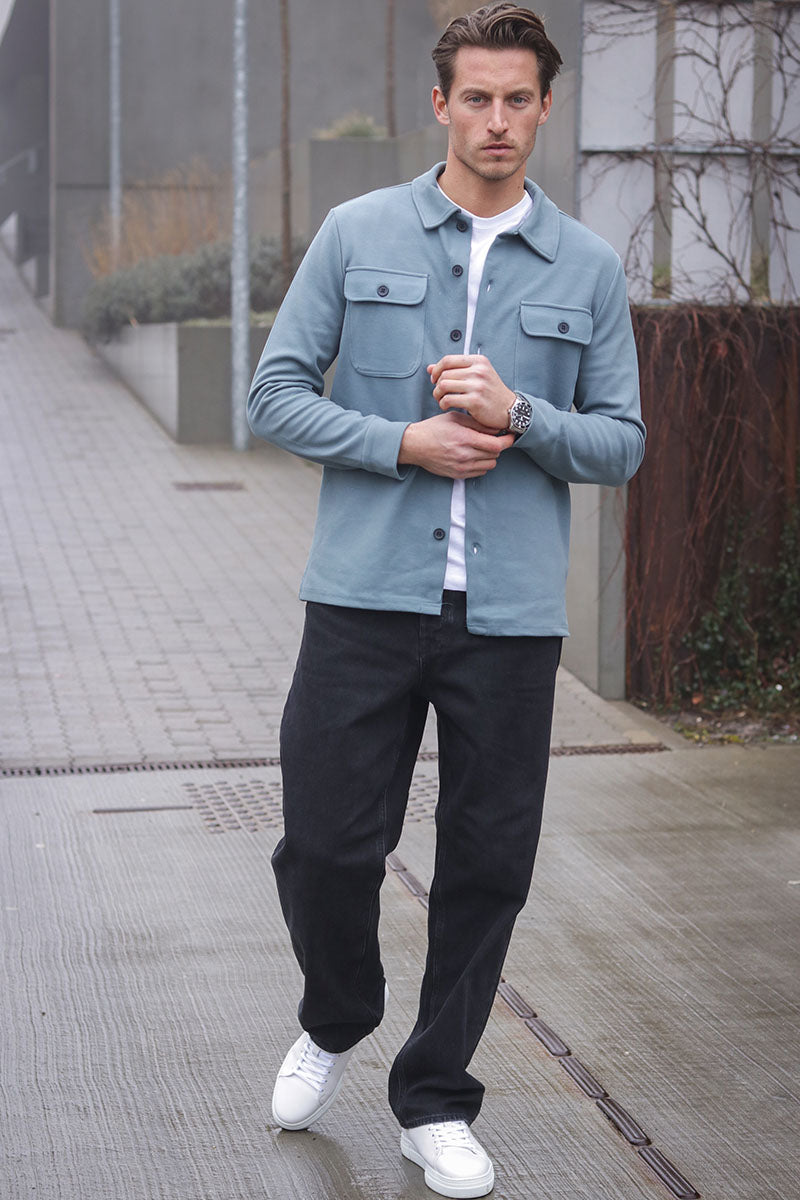 - Zapewnia zapięcie na guziki i kieszenie na piersi