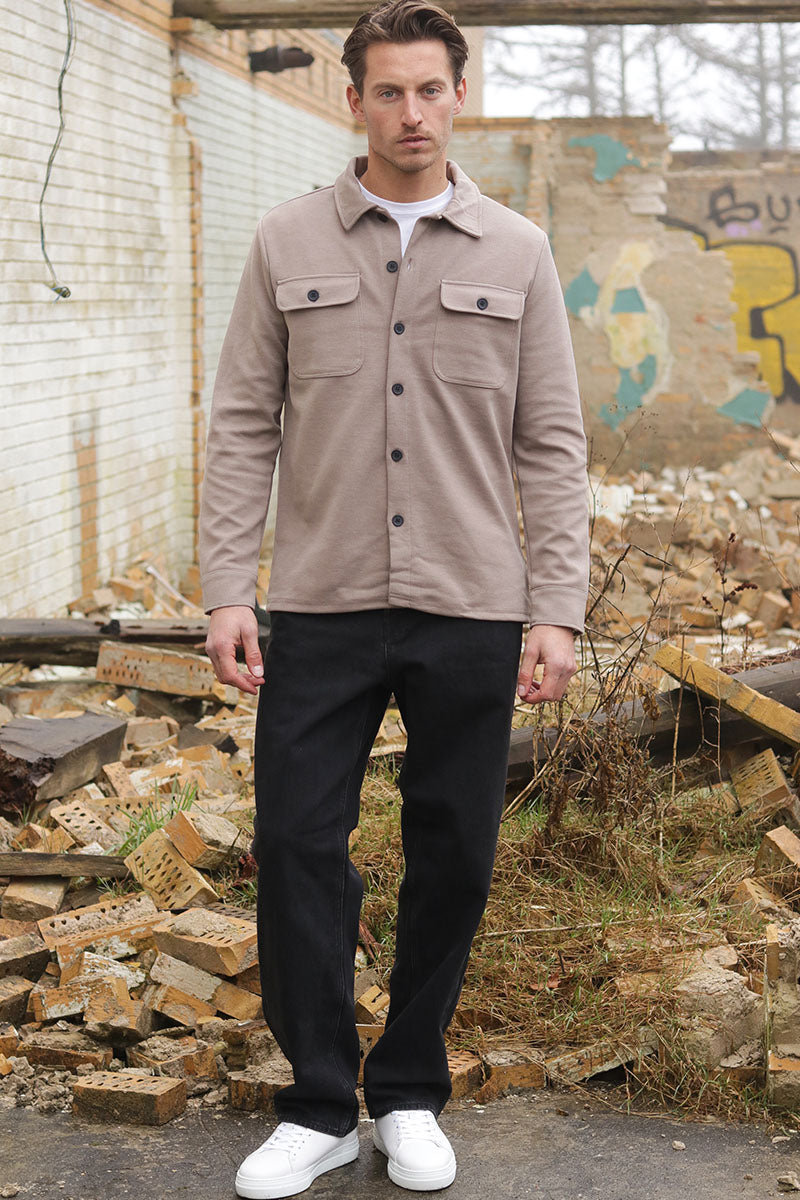 - Wyposażony w dwie kieszenie na piersi i zapięcie na guziki.